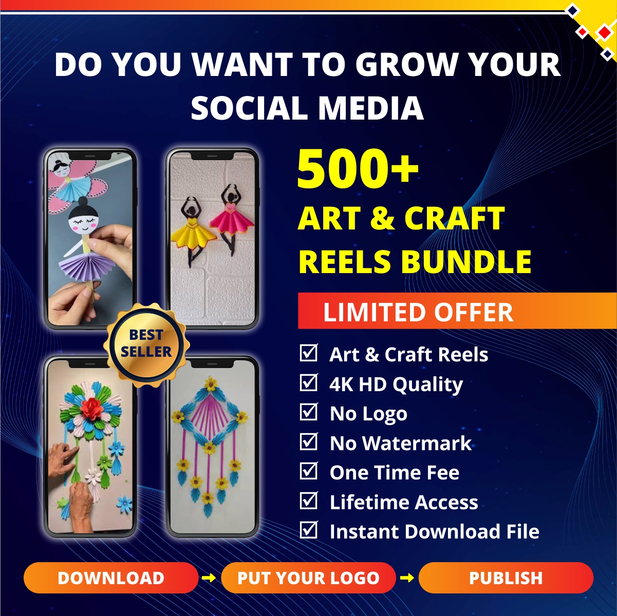 GET  9000+ ART AND CRAFT REELS BUNDLE FOR CONTENT CREATORS, STUDENTS, INFLUENCERS, BUSINESS OWNERS. DOWNLOAD PUT YOUR LOGO AND PUBLISH.